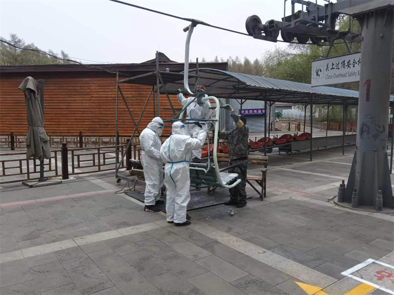 2023年5月15日,为充分展示“一群人、一条心、一起拼、一定成”“四个一”行动,游乐公司组织党员喷涂吊椅新油漆。