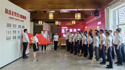 “没有共产党就没有新中国!”饮水思源感党恩,在党的103岁华诞到来之际,旅游集团党委组织各党支部以重温入党誓词、支部联建共建、参观爱国主义教育展馆等丰富多彩的形式表达对党的忠诚和热爱,献礼党的生日。机关党支部为庆祝中国共产党成立103周年,弘扬伟大建党精神,赓续红色血脉,凝聚奋进力量,开展了“庆七·一 重温入党誓词”主题党日活动,切实增强党员干部的荣誉感、责任感和使命感,提升党组织的向心力、凝聚力和战斗力。活动现场庄严肃穆,机关党支部书记孙海山带领机关党支部全体党员,身着正装,胸戴党徽,举起右拳,重温入党誓词。声音铿锵有力,久久回荡。入党誓词,字字千钧,这不仅是简单的短短几句话,更是我们对党和人民的郑重承诺,是我们共产党人一生的追求和信仰。此次“七·一”党员宣誓活动不仅增强了党员们的凝聚力和战斗力,也为机关党支部的发展注入了强大的精神动力。激励着全体党员不忘初心、牢记使命,为实现中华民族伟大复兴的中国梦而努力奋斗。