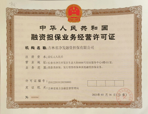 吉林省必赢242net官网融资担保有限公司融资担保业务经营许可证